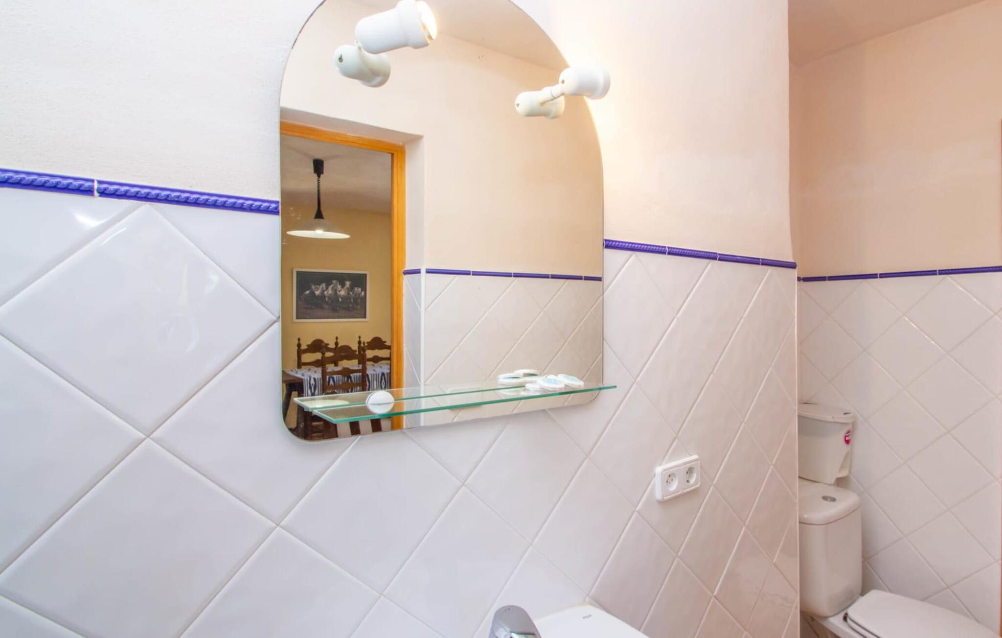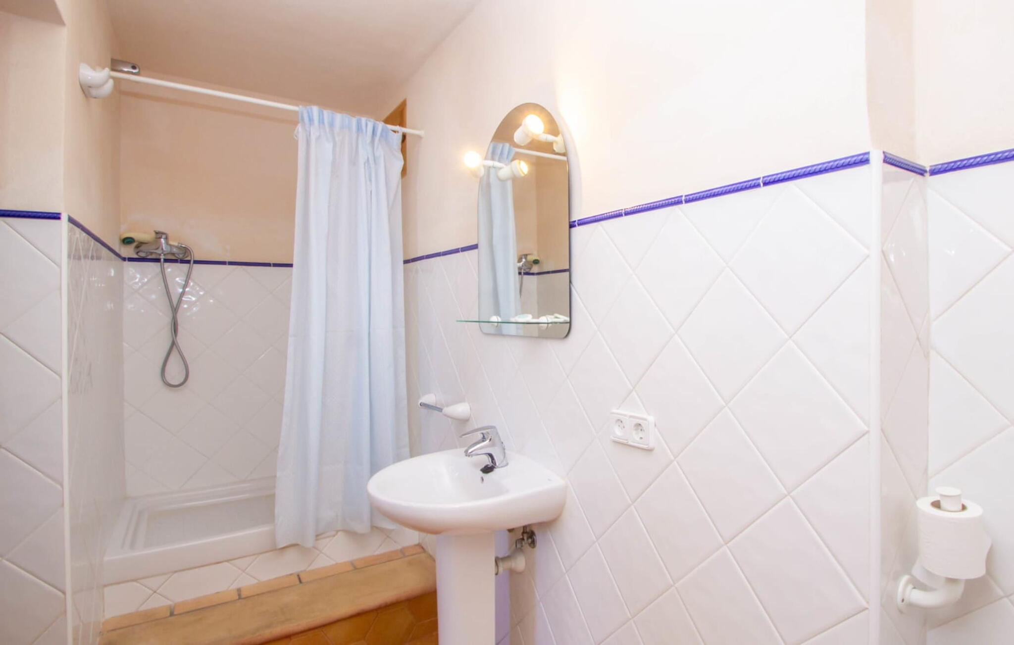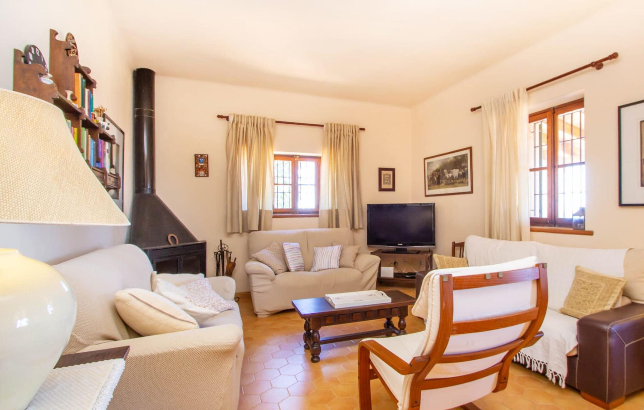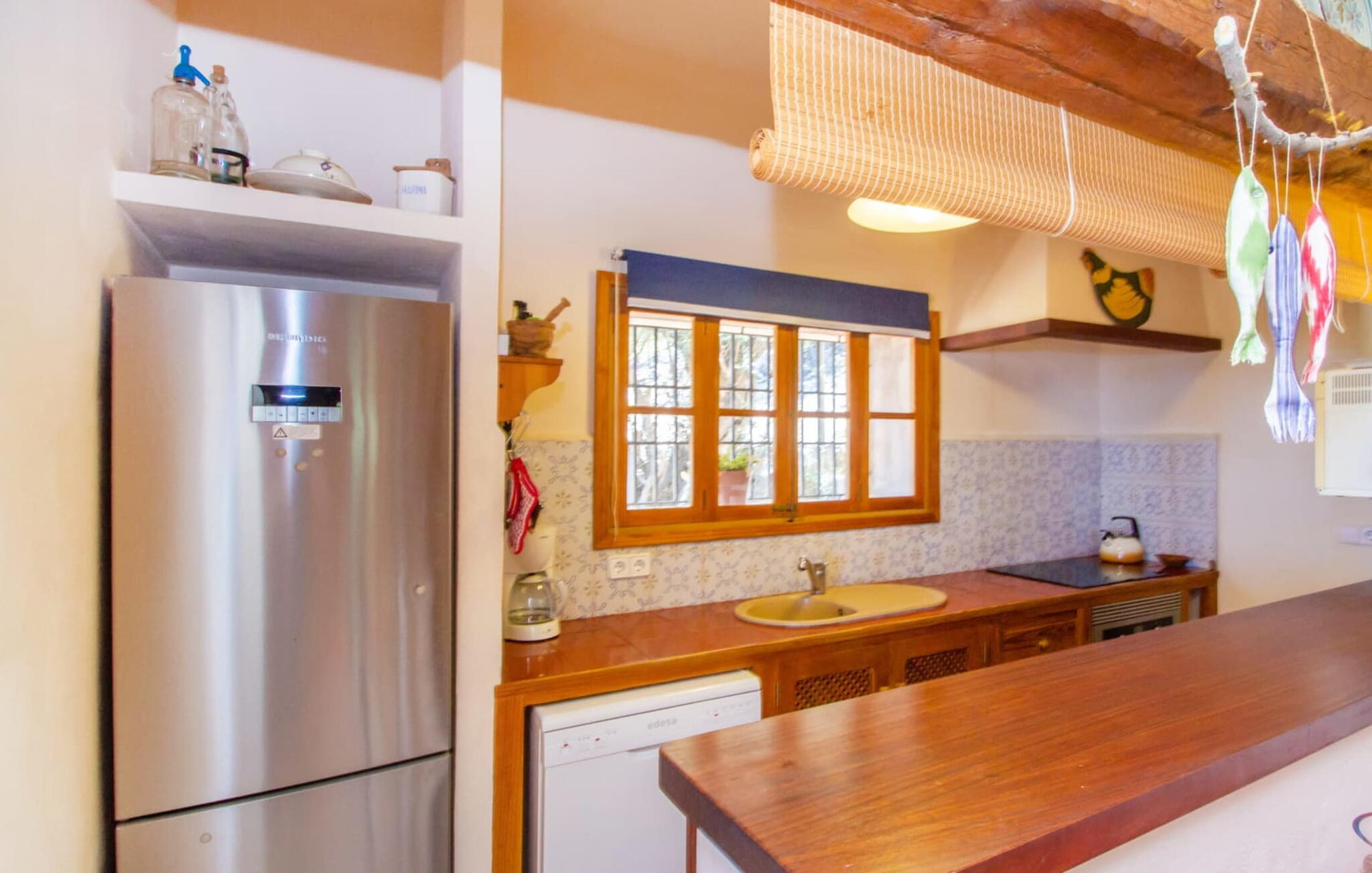 Het hoofdgebouw is verdeeld over twee verdiepingen en heeft twee comfortabele tweepersoonsslaapkamers, een badkamer met douche en een extra toilet. De open keuken is volledig uitgerust en de woon/eetkamer biedt de perfecte plek om te ontspannen. Een bijgebouw met een aparte ingang biedt extra leefruimte, een ruime tweepersoonsslaapkamer met en-suite badkamer en is ideaal voor groepen die op zoek zijn naar privacy. De airconditioning zorgt voor comfort op warme zomeravonden, terwijl de inrichting de authentieke Mallorcaanse stijl weerspiegelt, perfect om jezelf onder te dompelen in de lokale cultuur.