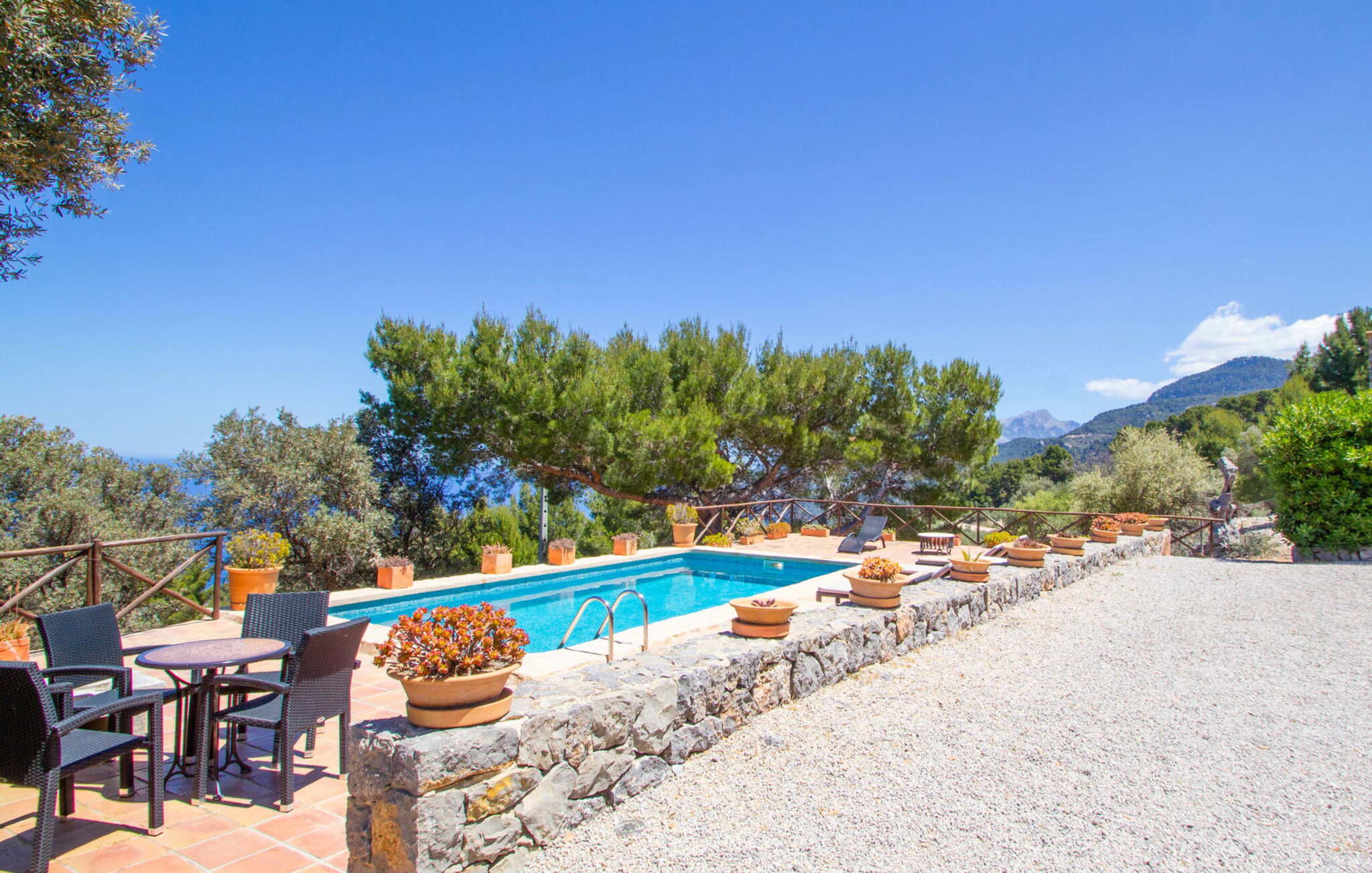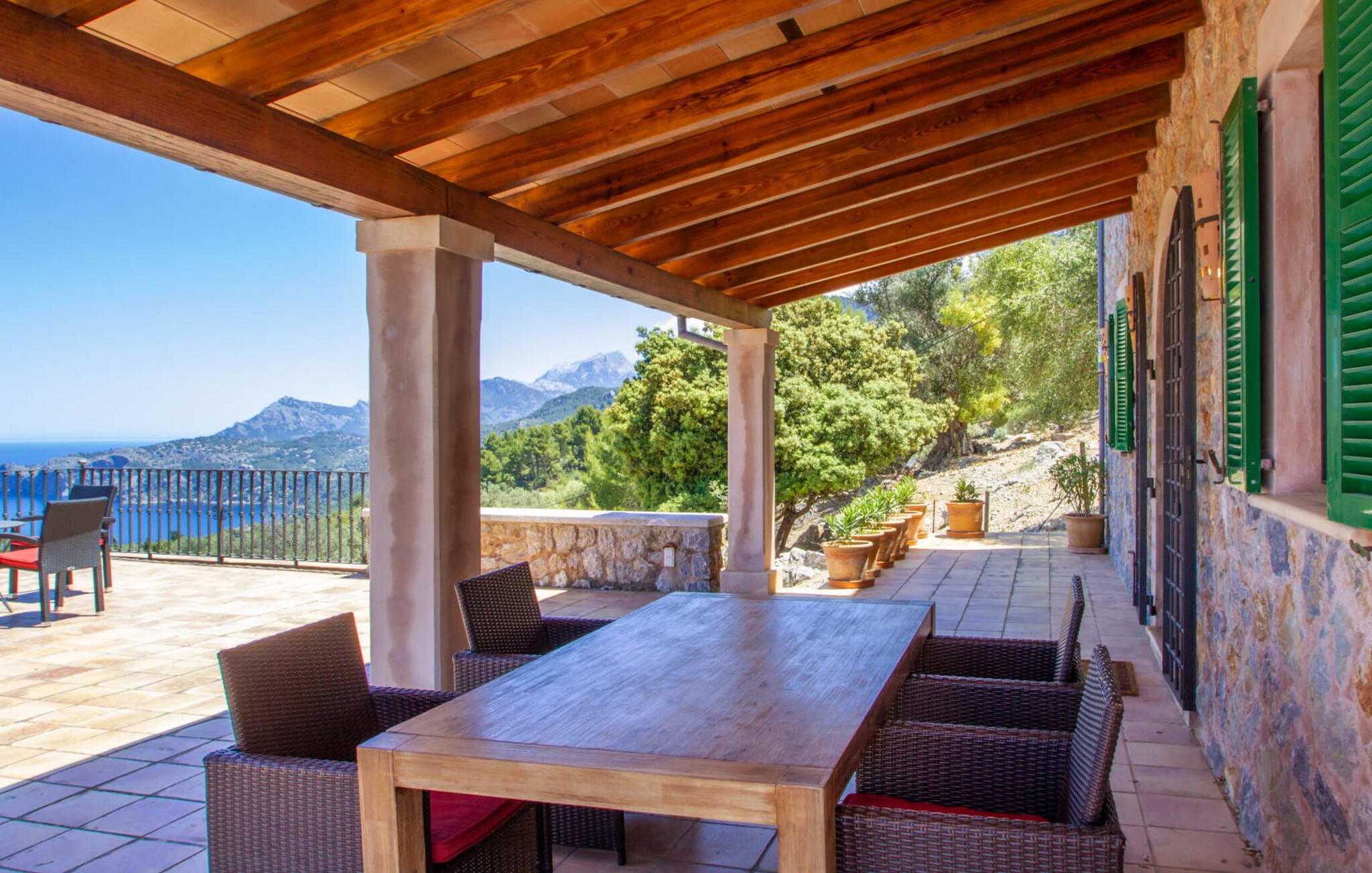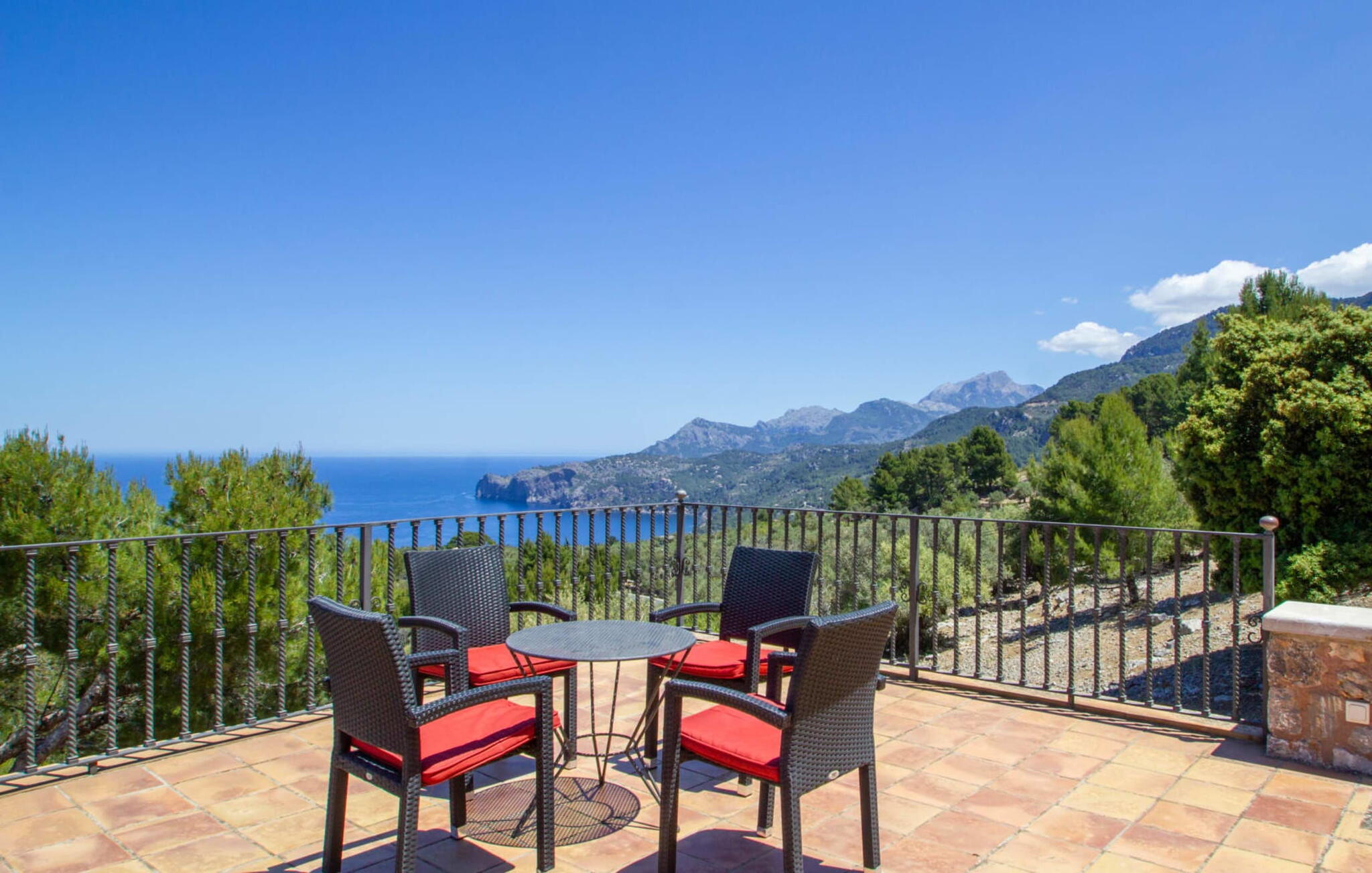 Deze charmante villa "Valero in traditionele Mallorcaanse landhuisstijl ligt vlakbij Valldemossa aan de prachtige westkust van het eiland en biedt een adembenemend uitzicht op zee.