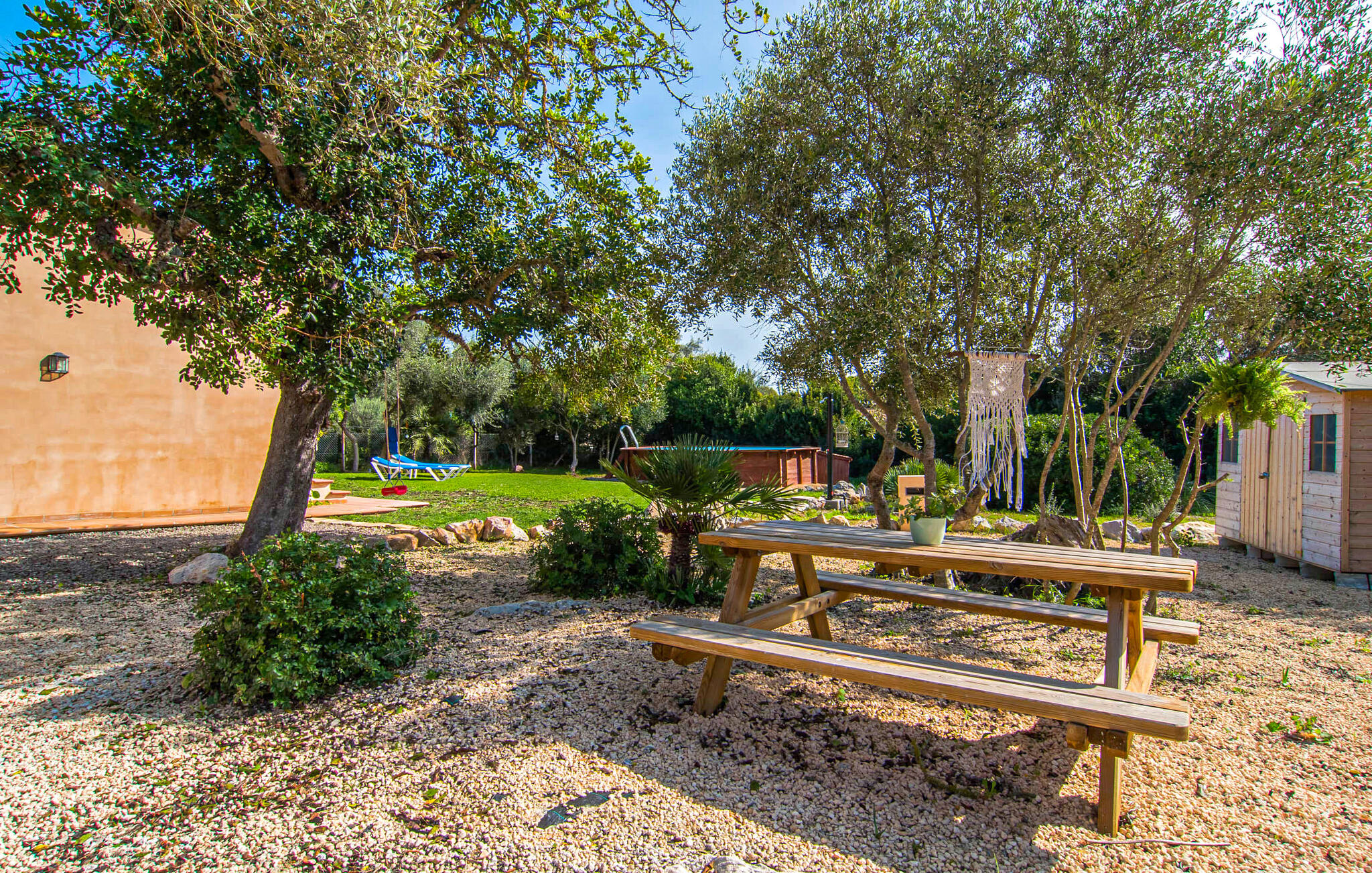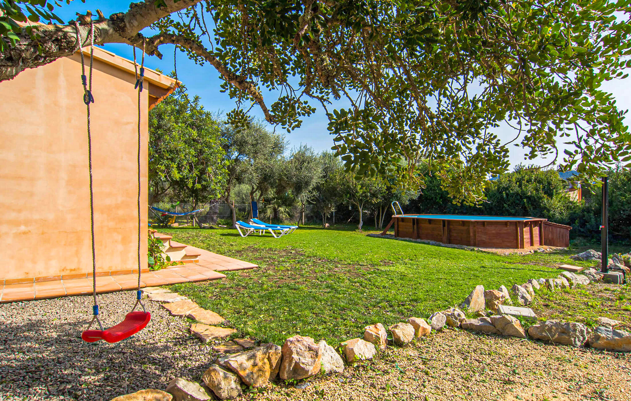 De rustieke maar moderne finca heeft een ruim bovengronds zwembad dat uitnodigt om af te koelen of te ontspannen. Geniet van het zonnebaden op de ligstoelen, ontspan in een Balinees bed of kom tot rust in een hangmat. De buitenruimte heeft een mediterrane tuin die speelmogelijkheden biedt voor kleine kinderen, terwijl een gemetselde barbecue en een overdekt terras het samenzijn `s avonds verrijken.