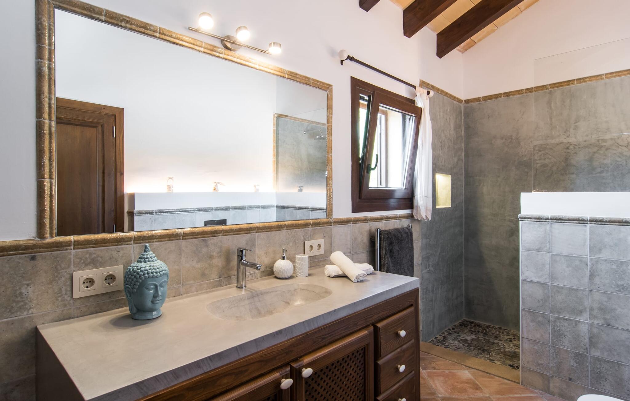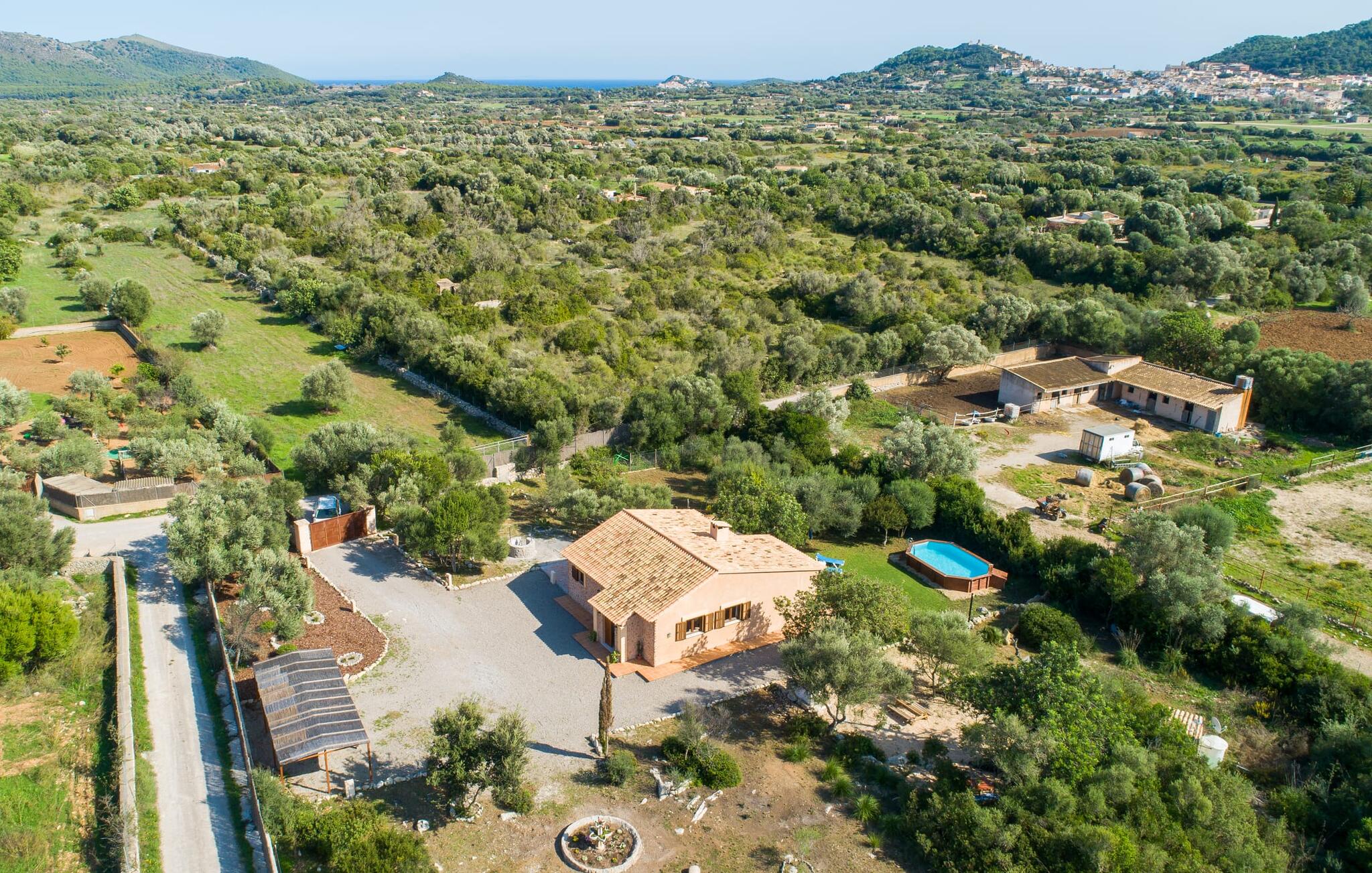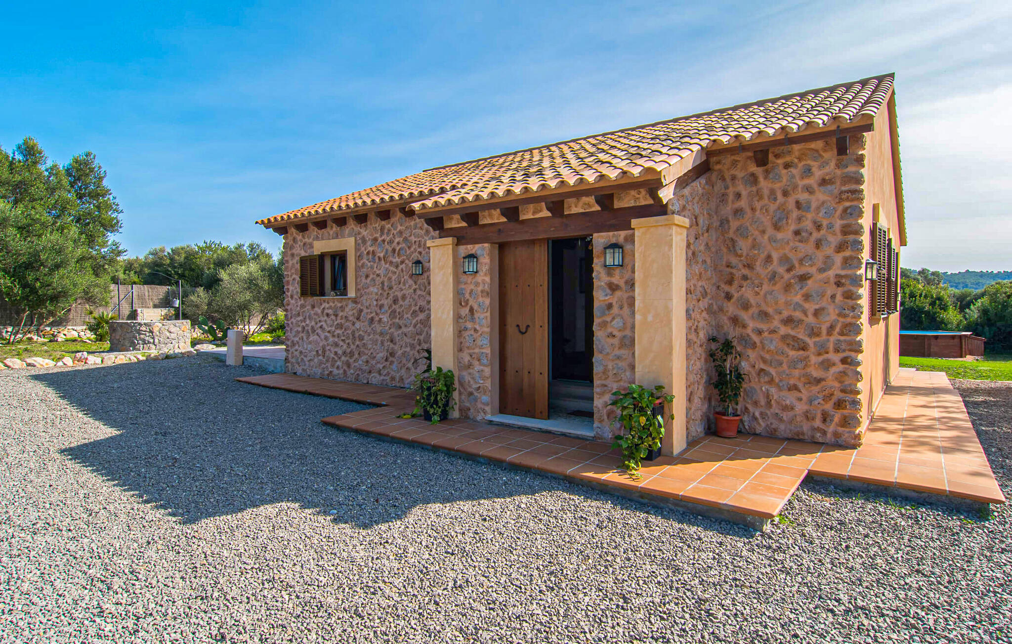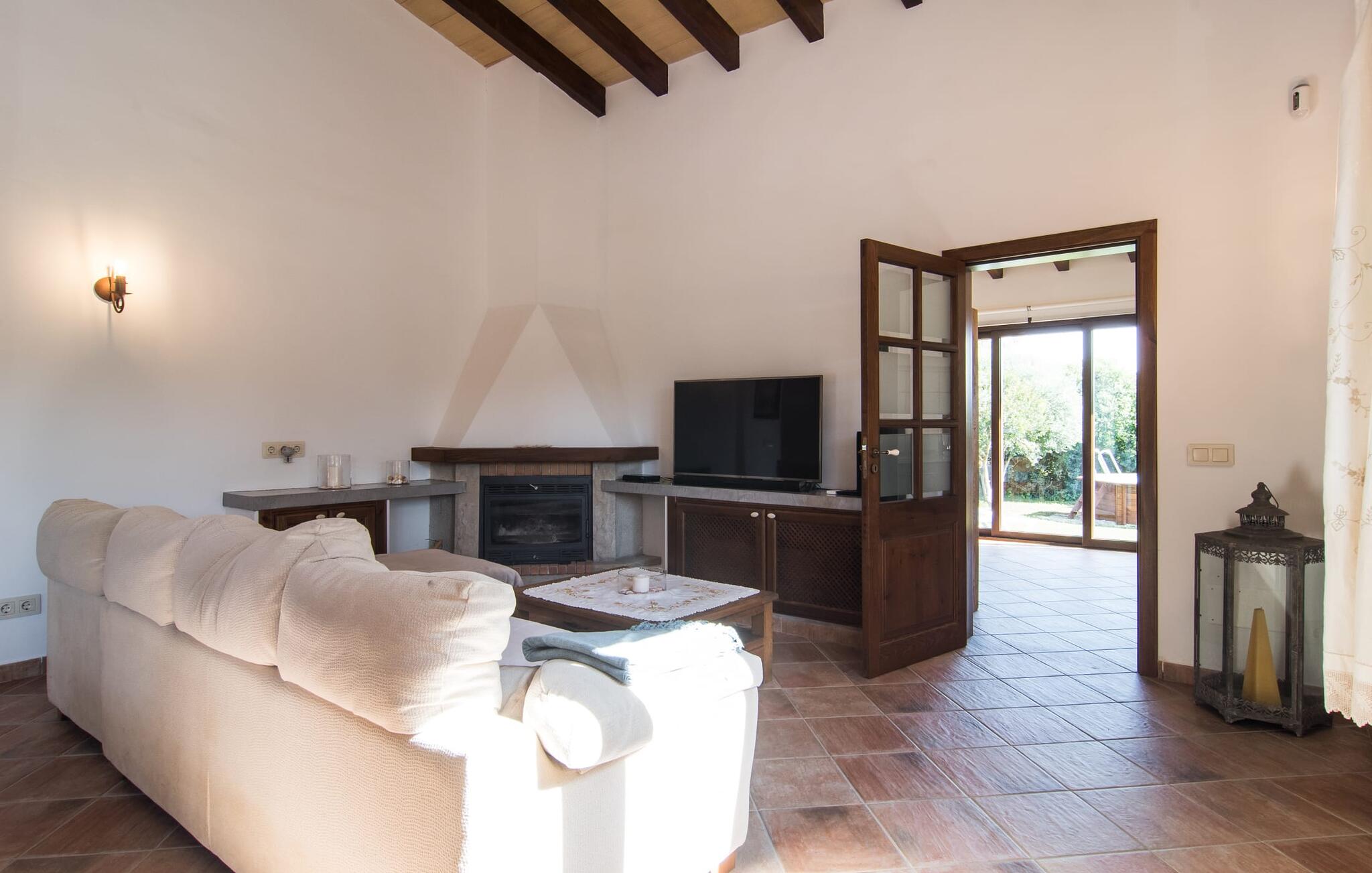 Binnen presenteert de villa een tijdloos interieur met natuurlijke Mallorcaanse kleuren en materialen, die een warme en gastvrije sfeer creëren. De belangrijkste kenmerken zijn natuurstenen vloeren, houten balken en een gezellige open haard in de open woon/eetkamer. De chique, volledig uitgeruste keuken en de ruime slaapkamer met inloopkast en moderne badkamer met inloopdouche ronden dit harmonieuze toevluchtsoord af.